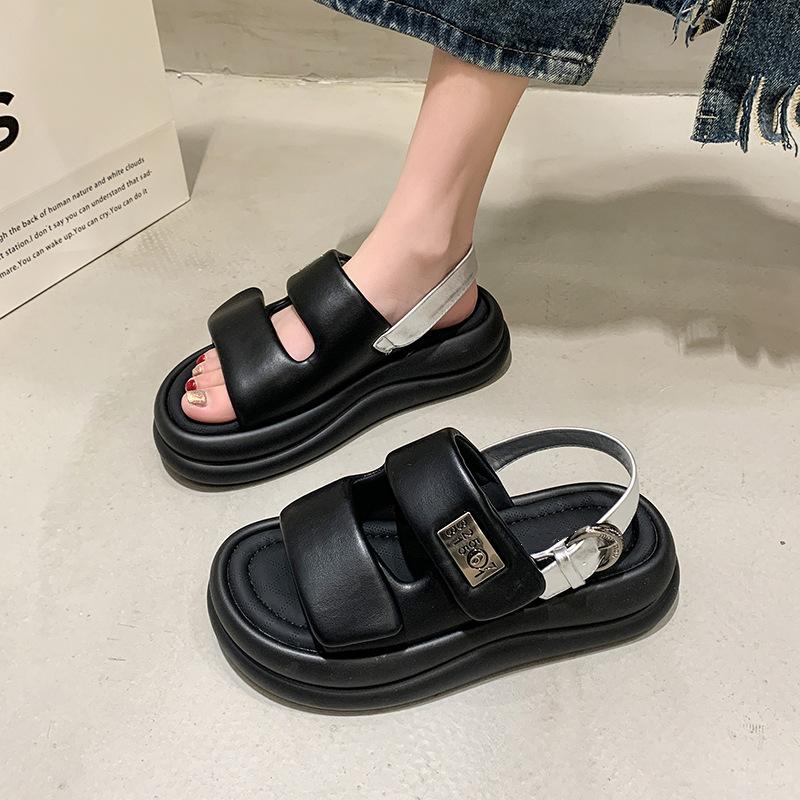 Весна и лето 2024 новые платформенные спортивные сандалии модные универсальные с пряжкой пляжная обувь тонкие римские сандалии тренд 40 чёрный