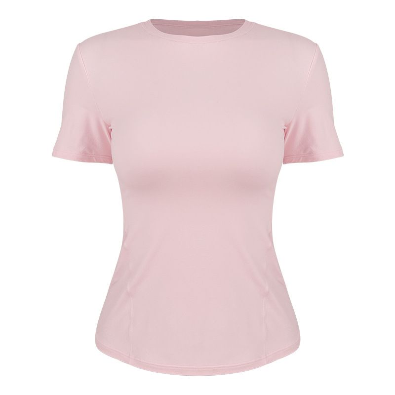 Весна и лето 2025 Новая одежда для йоги Женская Skims Высокая эластичность Плотная моделирующая Спортивная футболка с коротким рукавом и круглым вырезом Легкая одежда для тренировок Pink (Long) S