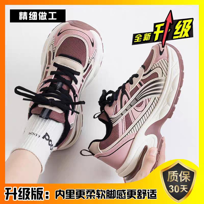 Весна и лето 2025 года, новая студенческая сетчатая дышащая обувь для папы, женская корейская версия, модные уличные ретро кроссовки на платформе 40 розовый