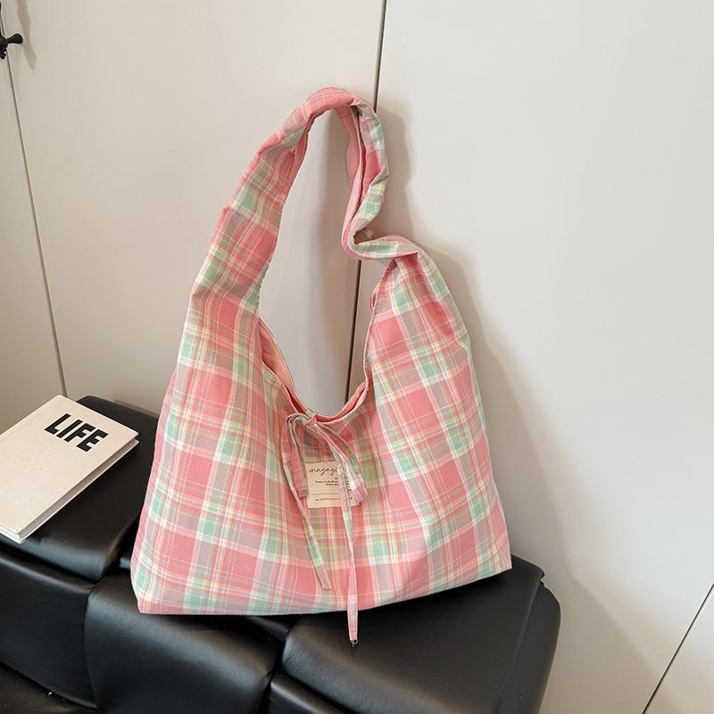 Весна новая свежая и универсальная вышитая сумка через плечо с бантом клетчатая сумка под мышкой ленивая холщовая сумка