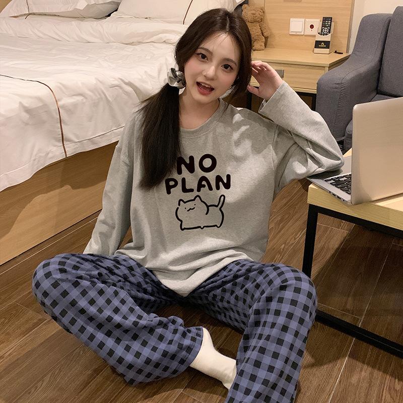 Весна и осень Женская пижама Домашняя одежда Девочки Хлопок Длинные рукава Брюки Мультфильм Милая Студенческая пижама XL