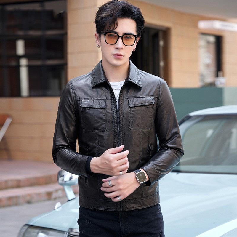 Весна и осень Новая куртка из натуральной кожи Мужская куртка из овчины Полуприталенная куртка с короткими лацканами Молодежная куртка Модная 4XL