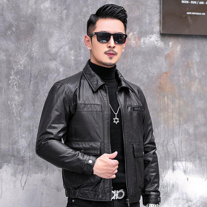 Весна и осень Первый слой коровьей кожи куртка мужская натуральная кожаная куртка новая повседневная тонкая модная куртка с лацканами 5XL