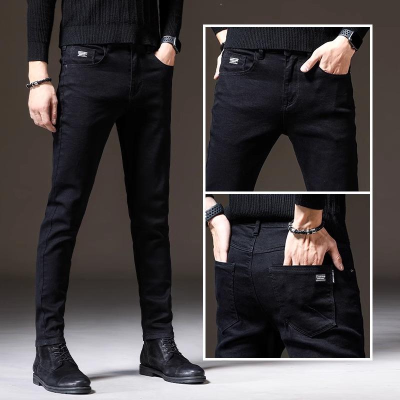 Весна и осень зима новые мужские обычные джинсы облегающие прямые эластичные деловые универсальные длинные брюки 38