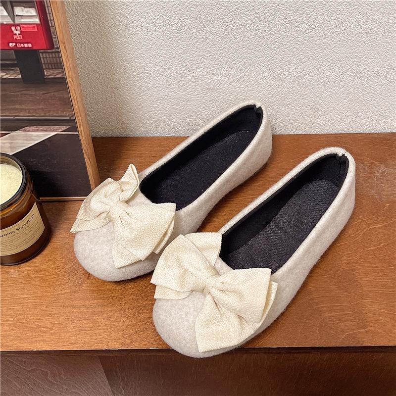 Весна и осень 2025 новая мягкая подошва замшевый бант однотонный нескользящий большой размер повседневная универсальная легкая обувь одинарная ткань 40