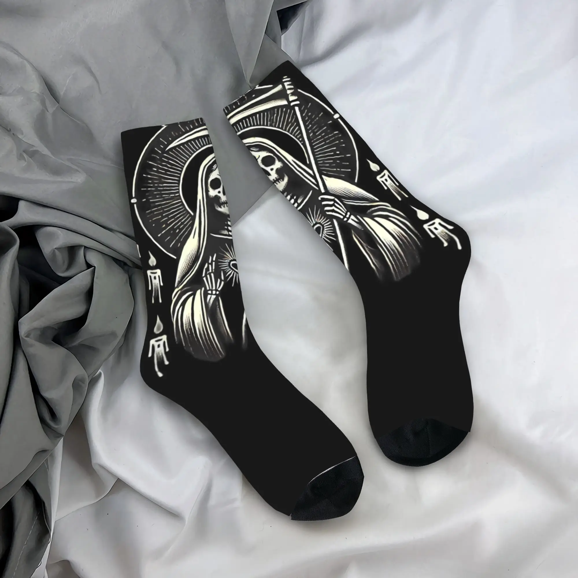 Santa Muerte Sacred Art Mystical Skeleton with Scythe Socks Harajuku Stockings Anti Sweat Unisex Men Socks Cycling Socks