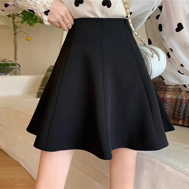 Весна 2024 Женская юбка-зонт А-силуэта с высокой талией черного цвета - Стиль колледжа, Облегающий крой, Защита от просвечивания. XL