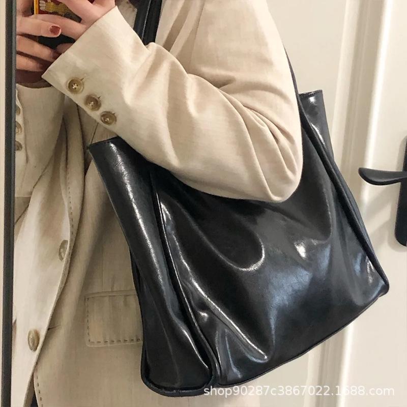 Весна 2025 Большая Вместимость Сумка-Тоут для Поездок - Повседневная Текстура, Ранний Стиль, Женская Сумка через Плечо Black (Magnetic Button)