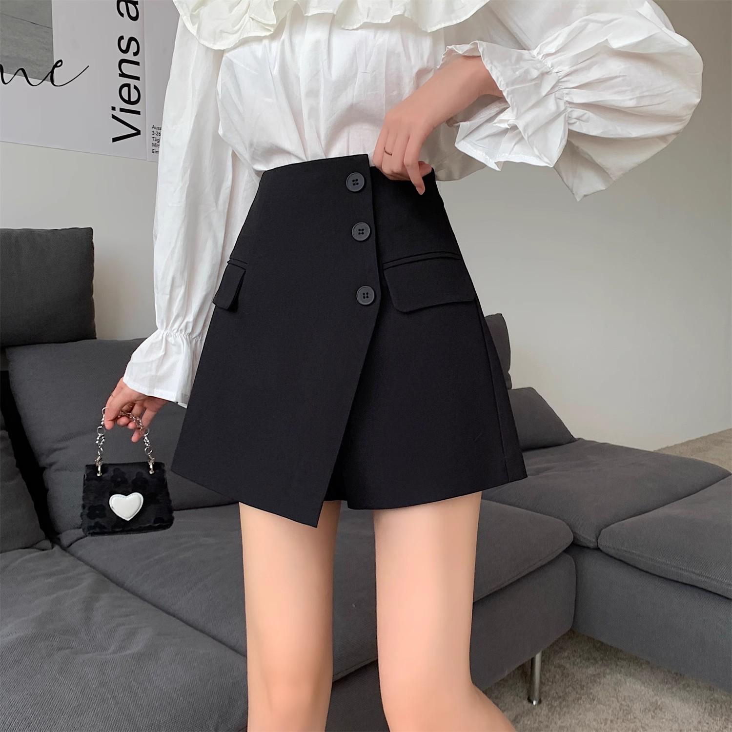 Весна 2025 Женские хаки кюлоты с высокой талией - Неправильная А-линия на пуговицах Свободная юбка-брюки с широкими штанинами S