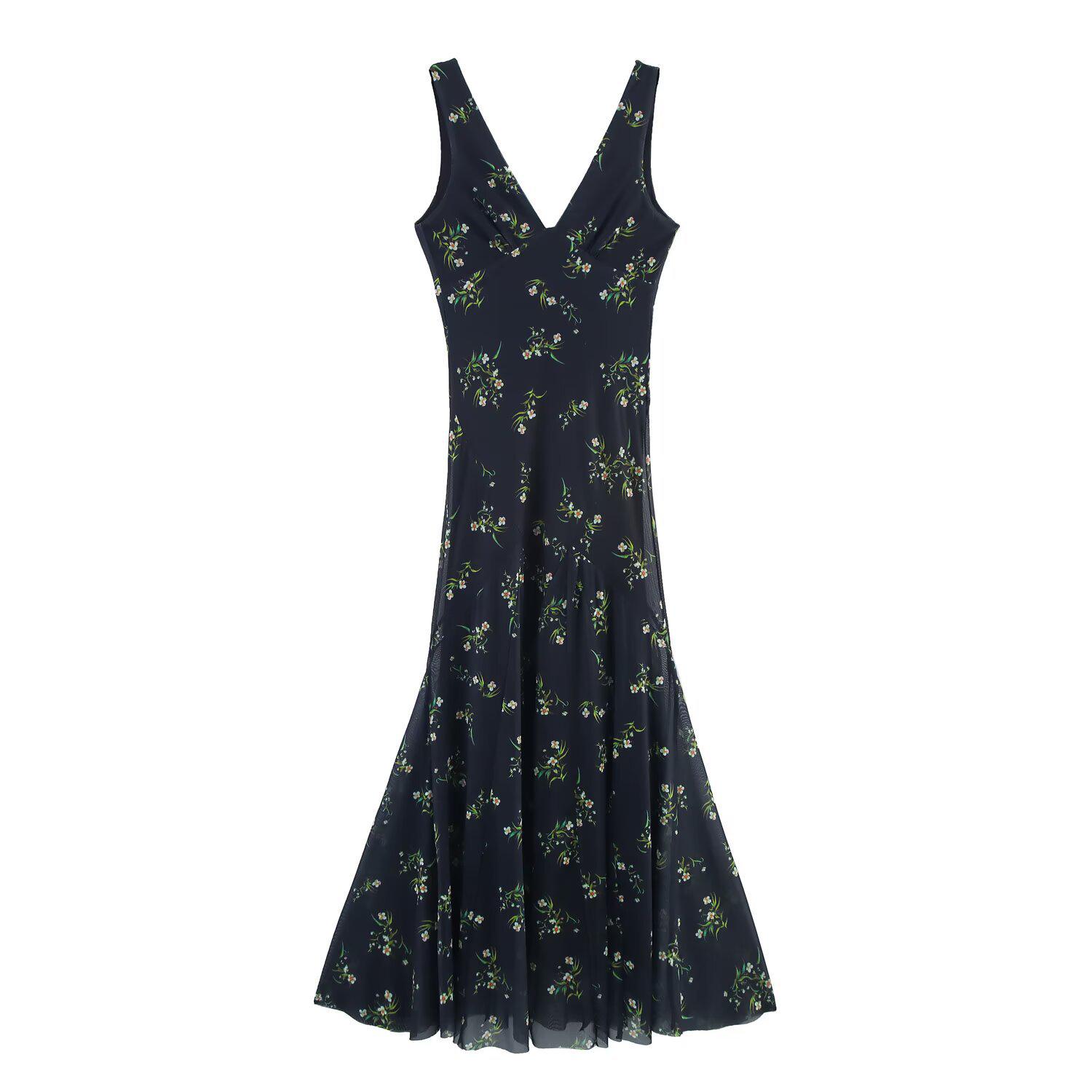 Весна 2025 Женское Европейское и Американское Цветочное Шелковое Приталенное Длинное Платье L цветочные печати