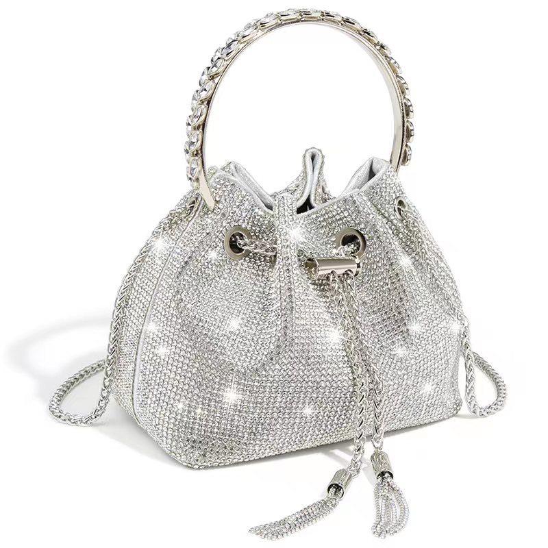 Весна 2025 г. Женская сумка через плечо со стразами и цепочкой – корейская модная вечерняя сумочка 17cm