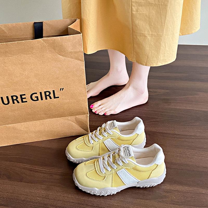 Весна 2025 новые туфли из мягкой кожи в стиле Форреста Гампа удобная мягкая подошва универсальная спортивная и повседневная обувь корейская версия ретро немецкие тренировочные туфли w 35 жёлтый