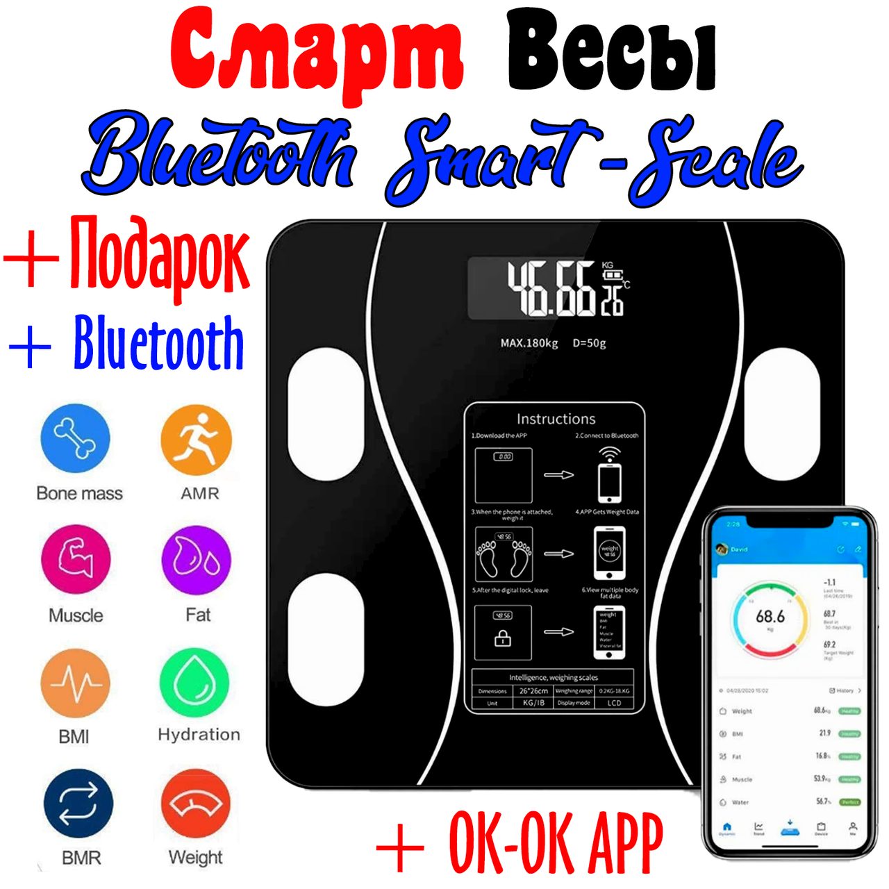 Весы напольные смарт SC-600 Bluetoot | умные весы с приложением и сенсорами | весы для спорта здоровья
