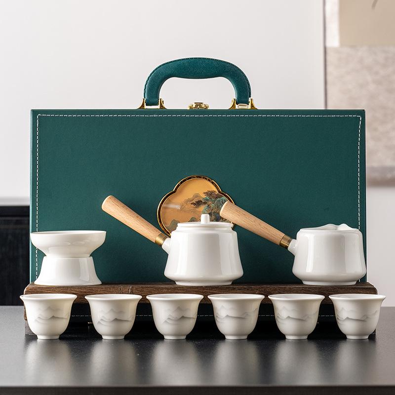 Весь набор из белого фарфора цвета сала, полный набор для чая кунг-фу, домашний, офисный, деловой чайный сервиз в подарок