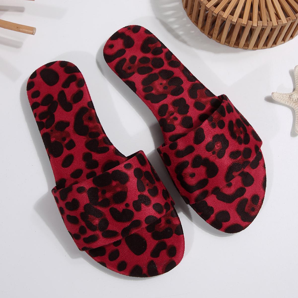 Ветер тапочки большого размера с леопардовым принтом на плоской подошве 2025 лето новые модные универсальные квадратные тапочки с одним словом женские 43 красный