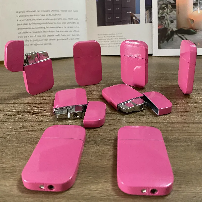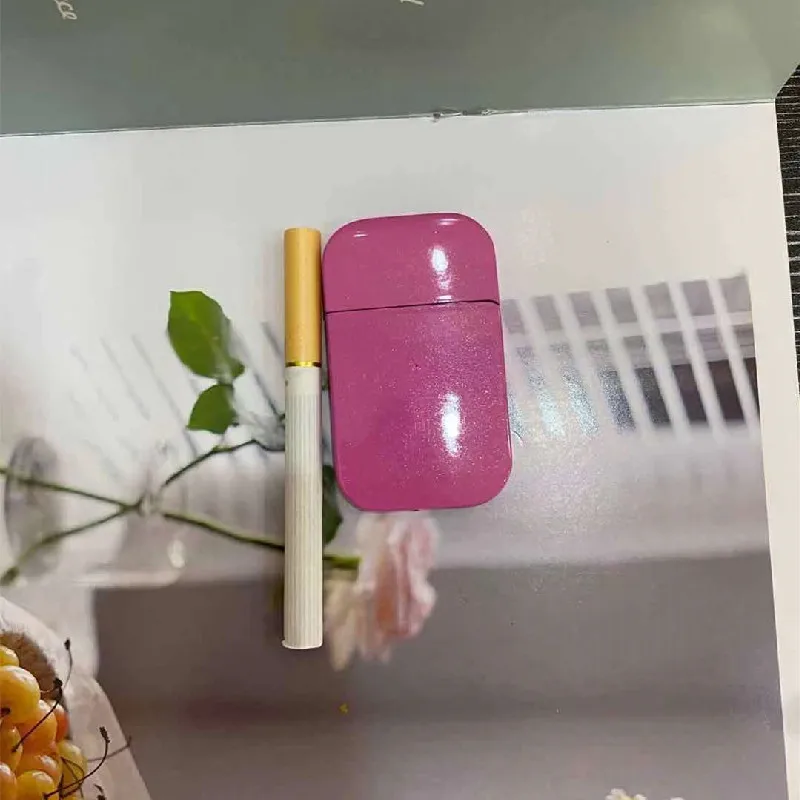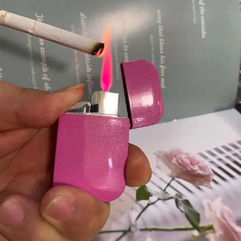 Ветрозащитная Бутановая Зажигалка, креативная ультратонкая металлическая симпатичная Зажигалка для девушек с розовым пламенем, подарок д...