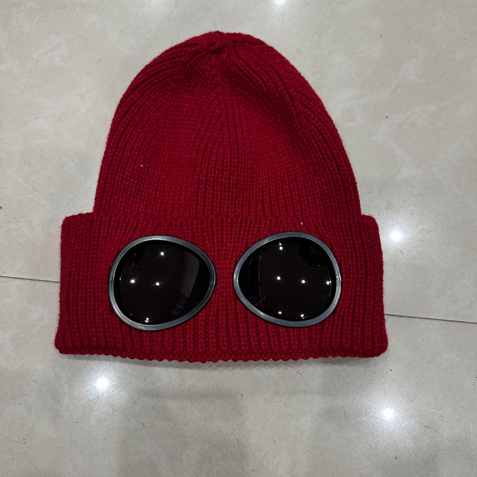 Ветрозащитные очки для активного отдыха, утолщенная вязаная шерстяная шапка для лыж, теплая защита ушей, холодная шапка темно-красного
