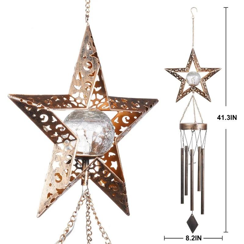 Ветряные колокольчики на открытом воздухе, светящиеся луна, солнце, звезды, солнечные светящиеся ветряные колокольчики, металлические трубки, ветряные колокольчики для домашнего декора, водонепроницаемые колокольчики в подарок