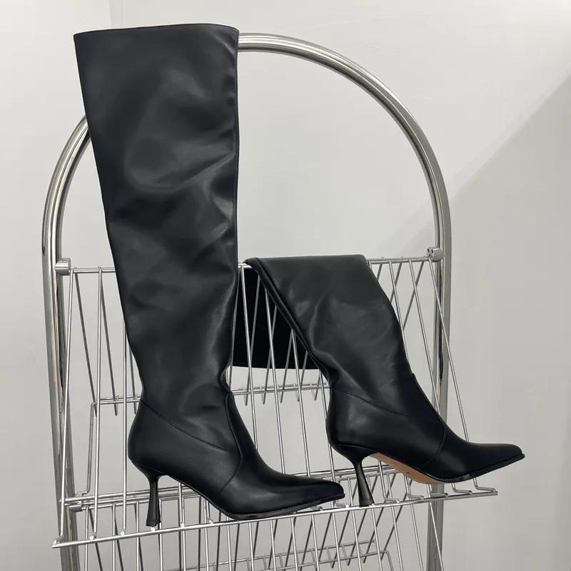 Вечеринка Современные Женские Сапоги до Колена Модный Плиссированный Западный Стиль Женские Длинные Сапоги Обувь Женские Туфли на Каблуке Обувь 35 чёрный
