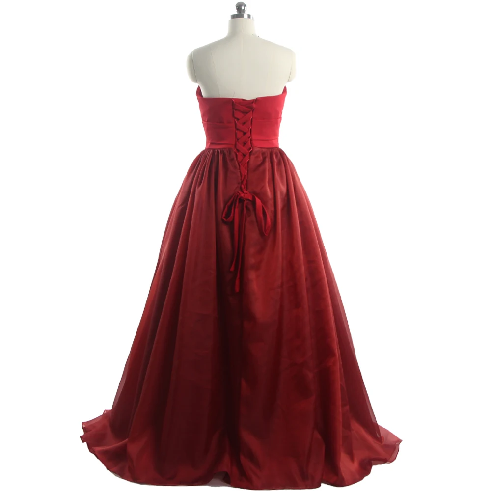Вечернее Платье бордовое атласное Тюлевое без бретелек с рюшами без рукавов трапециевидное в пол простые женские вечерние платья больших размеров B1439