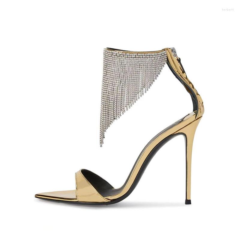 Sandals Arden Furtado Summer Women's Patent Leather Stilettos Heels Sexy Open Toe Crystal Tassels Back Zipper Party, Silver