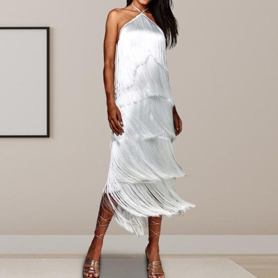 Вечернее женское платье с бретелькой на шее, с бахромой на плечах, многослойное подол с открытой спиной и разрезом