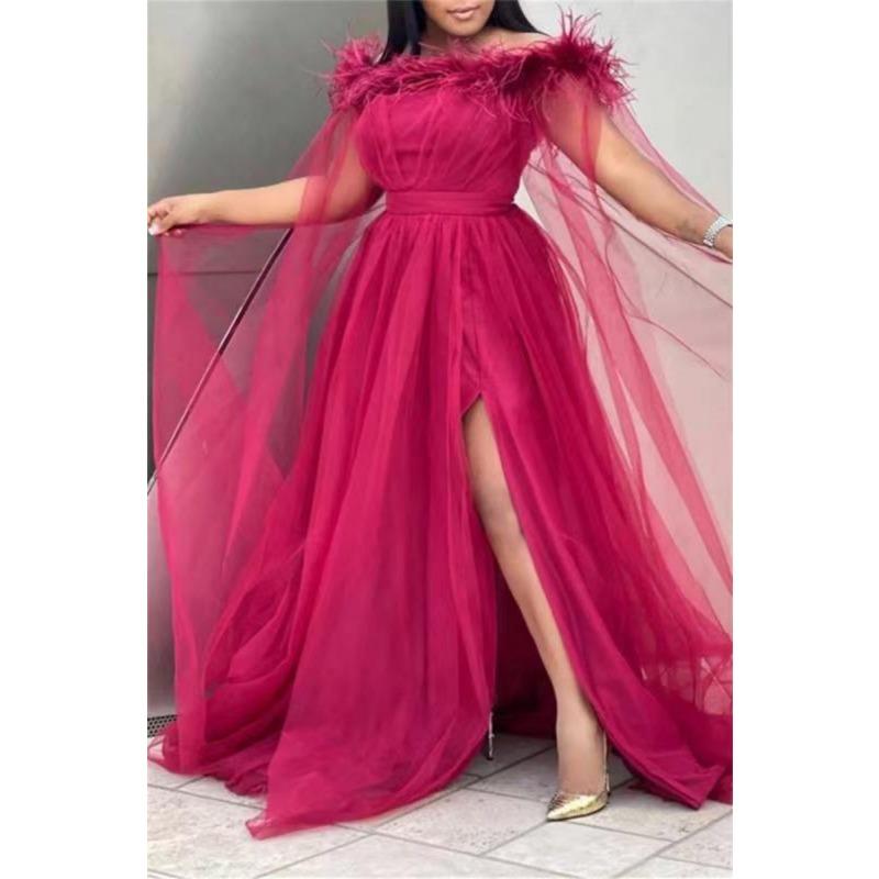 Вечернее платье больших размеров, весеннее и летнее женское вечернее платье, свободные сетчатые платья L красный