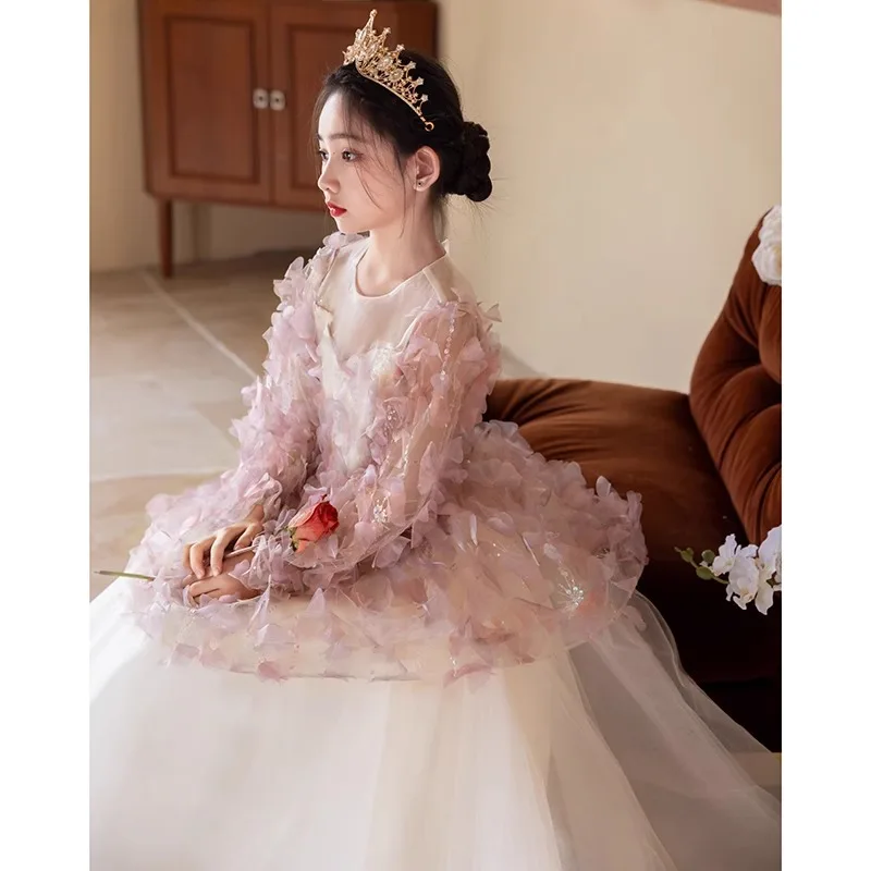 Вечернее платье для девочек, весенне-осеннее легкое роскошное нишевое высококачественное платье принцессы с цветочным узором для маленьких девочек, детское платье для хозяина