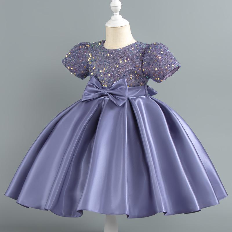 Вечернее платье для девочек с пайетками, атласное, с короткими рукавами - Пышный костюм премиум-класса на день рождения 130 cm