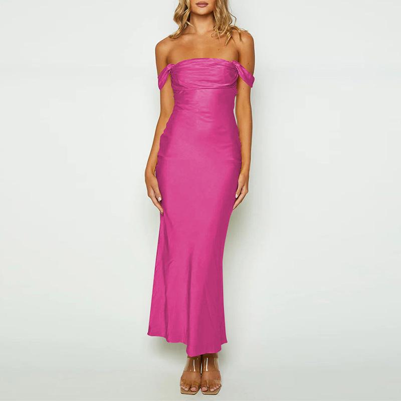 Вечернее платье женское атласное темпераментное элегантное юбка с открытыми плечами платье подружки невесты S