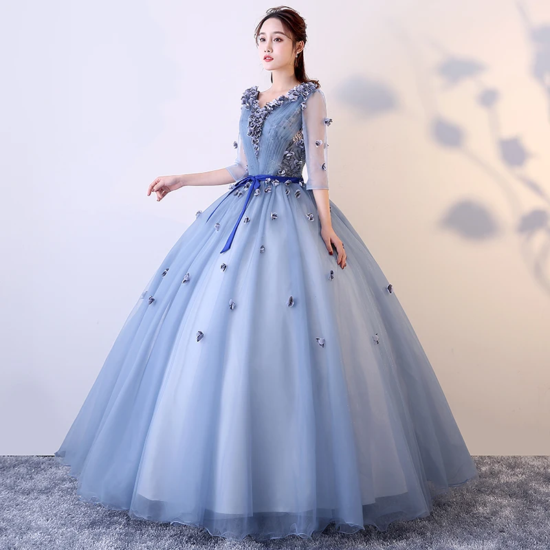 Вечернее платье, классическое кружевное бальное платье для выпускного вечера с V-образным вырезом и поясом, Винтажные Платья с цветочным пр...