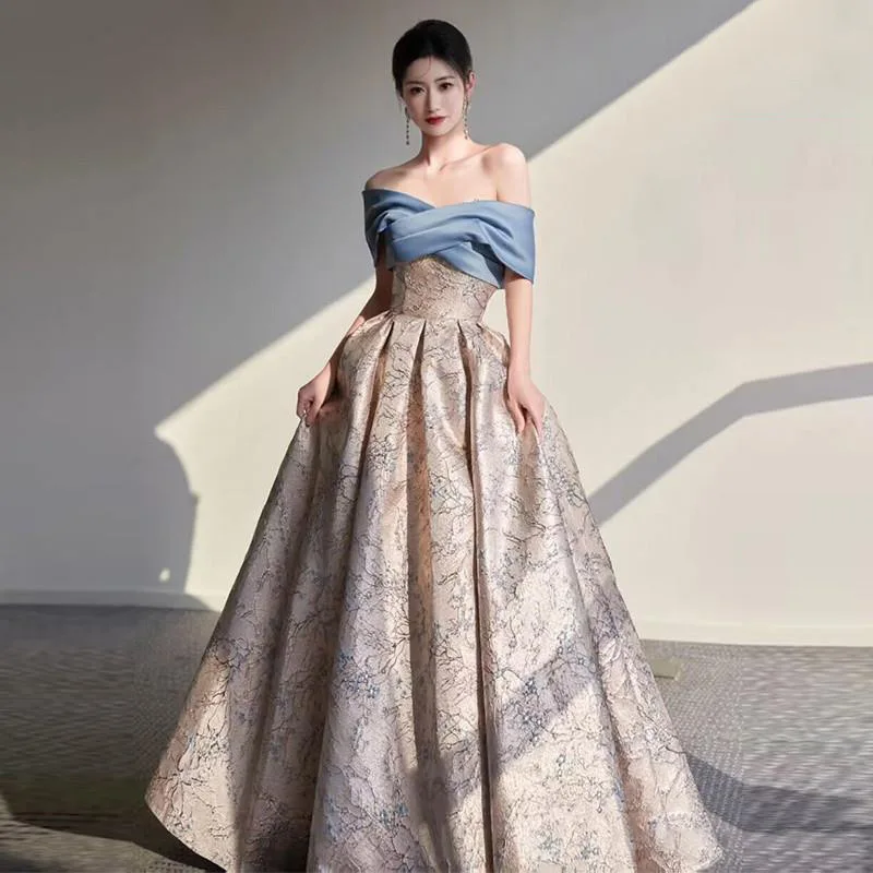 Вечернее платье, летнее новое стильное женское элитное нишевое легкое роскошное платье для банкета, темперамента, платье на одно плечо с юбкой