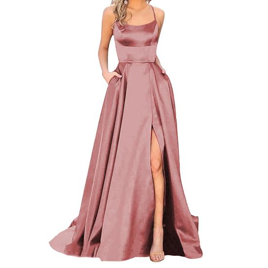 Вечернее платье на бретелях-спагетти, с высоким разрезом, с открытыми плечами, без спинки, без рукавов, с боковыми карманами 2XL розового золота