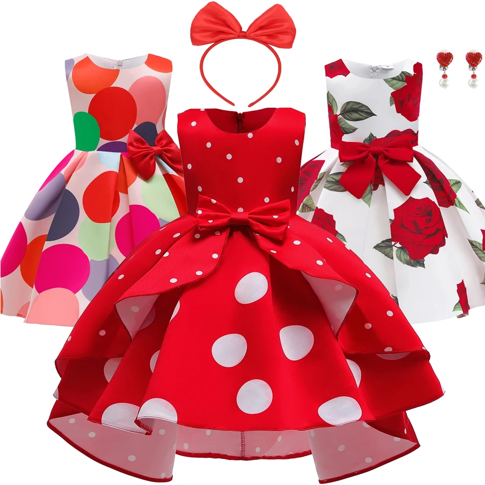 Вечернее платье принцессы для девочек, элегантное классическое платье в горошек в стиле ретро, милое бальное платье, детские платья-пачки