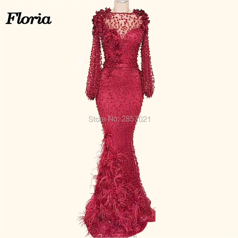 Вечернее платье русалки с бисером и перьями, длинное платье для выпускного вечера из Дубаи, арабские платья для вечеринок на Ближнем Восток...