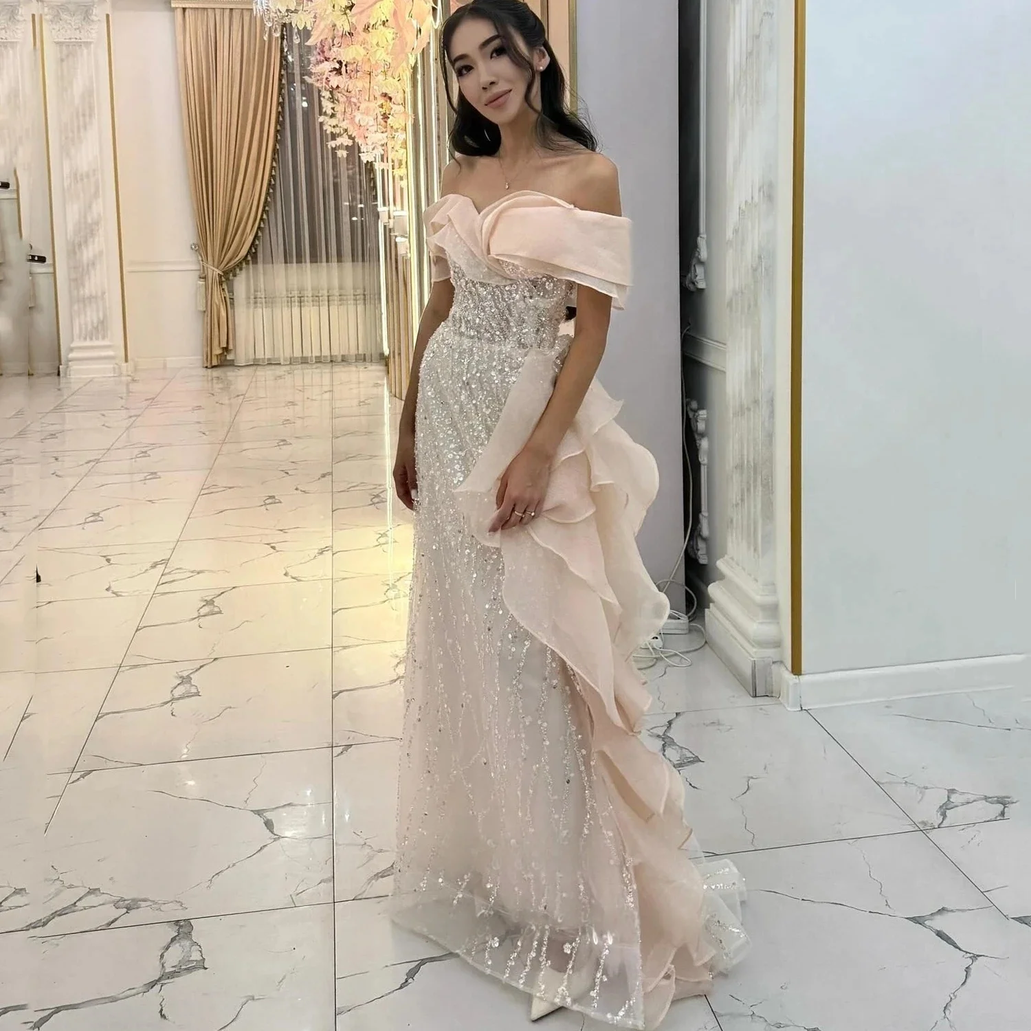 Вечернее платье с блестками для торжественных вечеринок, длинное платье на заказ, вечерние платья для выпускного вечера, пасторальный унисекс, Джерси в стиле ретро, Дубай, Саудовская Аравия, по индивидуальному заказу