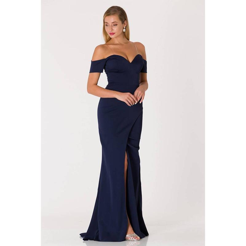 Вечернее платье с разрезом «рыбка» темно-синее