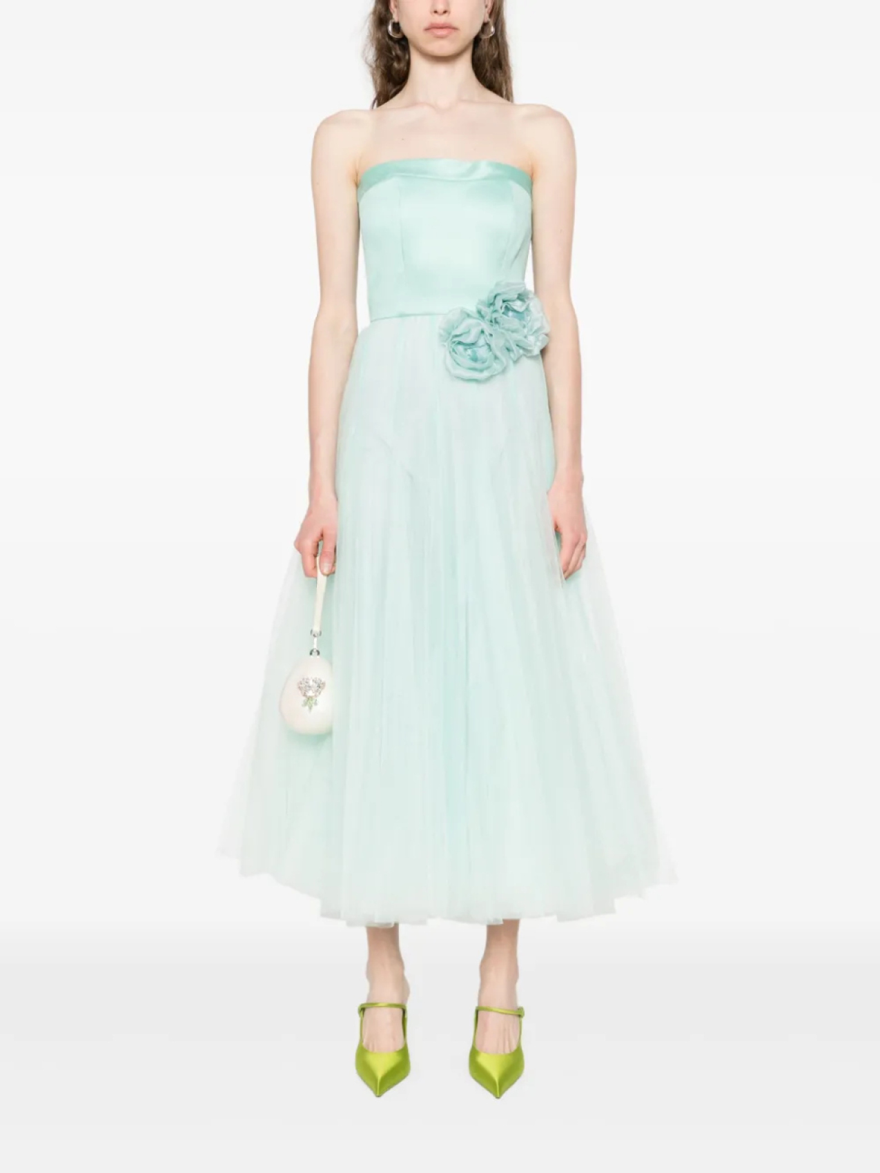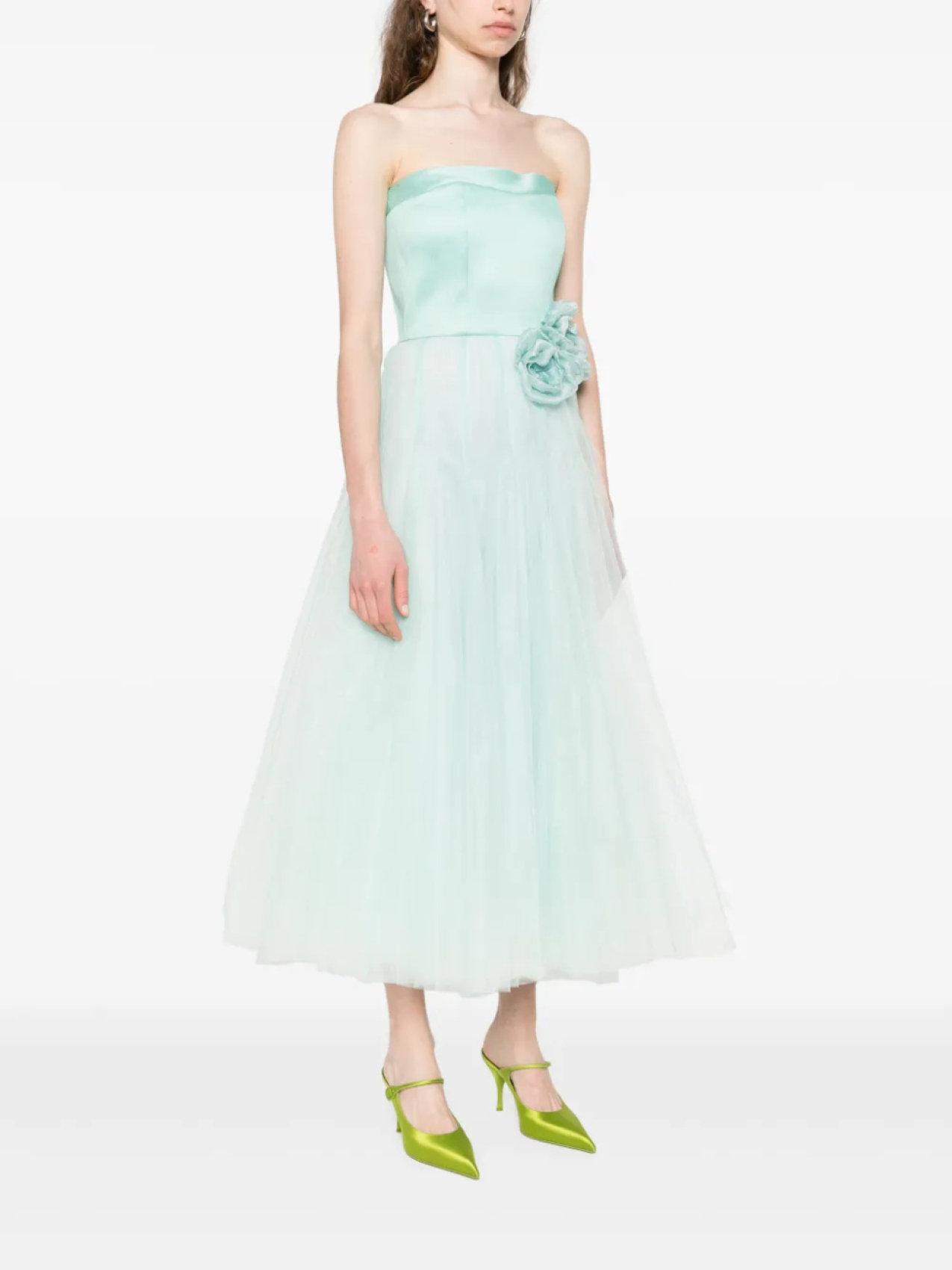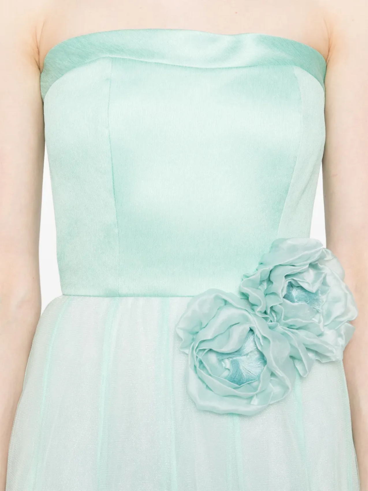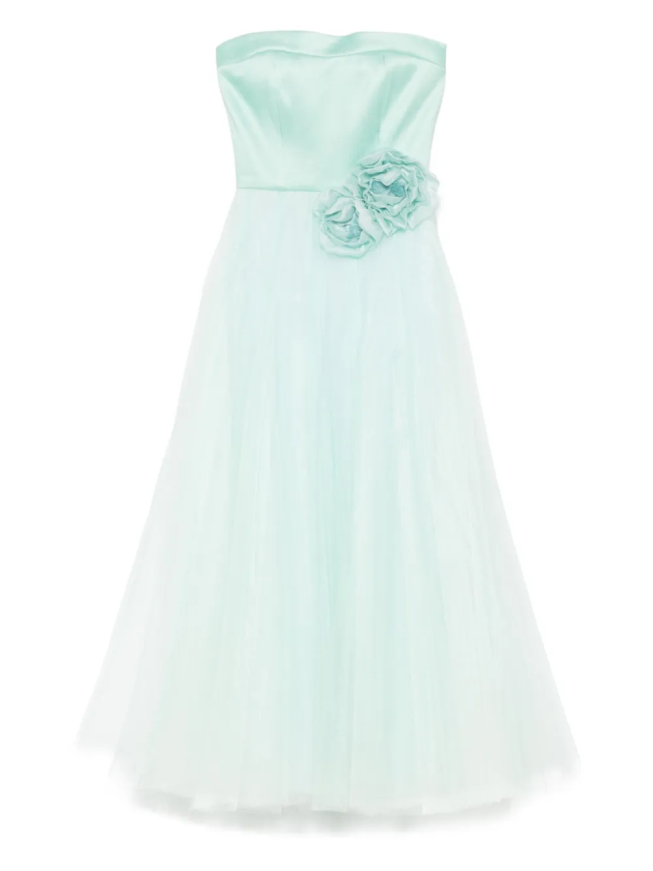 Подробнее о товаре: • бирюзовый • потайная застежка на молнии сзади • без бретелей • верхний слой из тюля • цельная подкладка