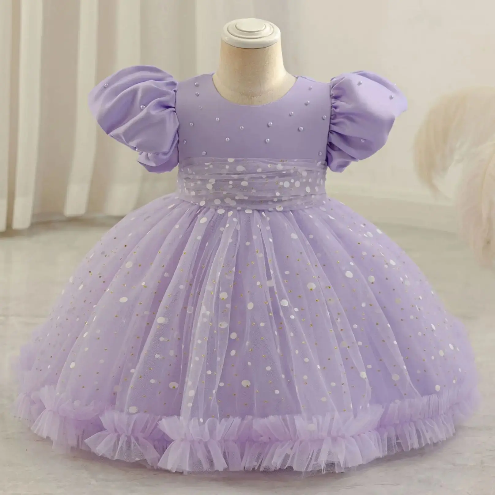 Вечерние платья для милых девочек, тюлевое платье принцессы с пышными рукавами и бисером для малышей, свадьбы, дня рождения, крещения, выпускного вечера, торжественное платье