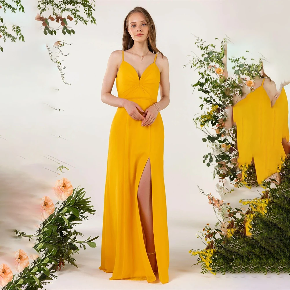 Вечерние платья женские элегантные с v-образным вырезом без рукавов на тонких бретельках с рюшами и открытой спиной с высоким разрезом прямые платья для выпускного вечера вечерние платья