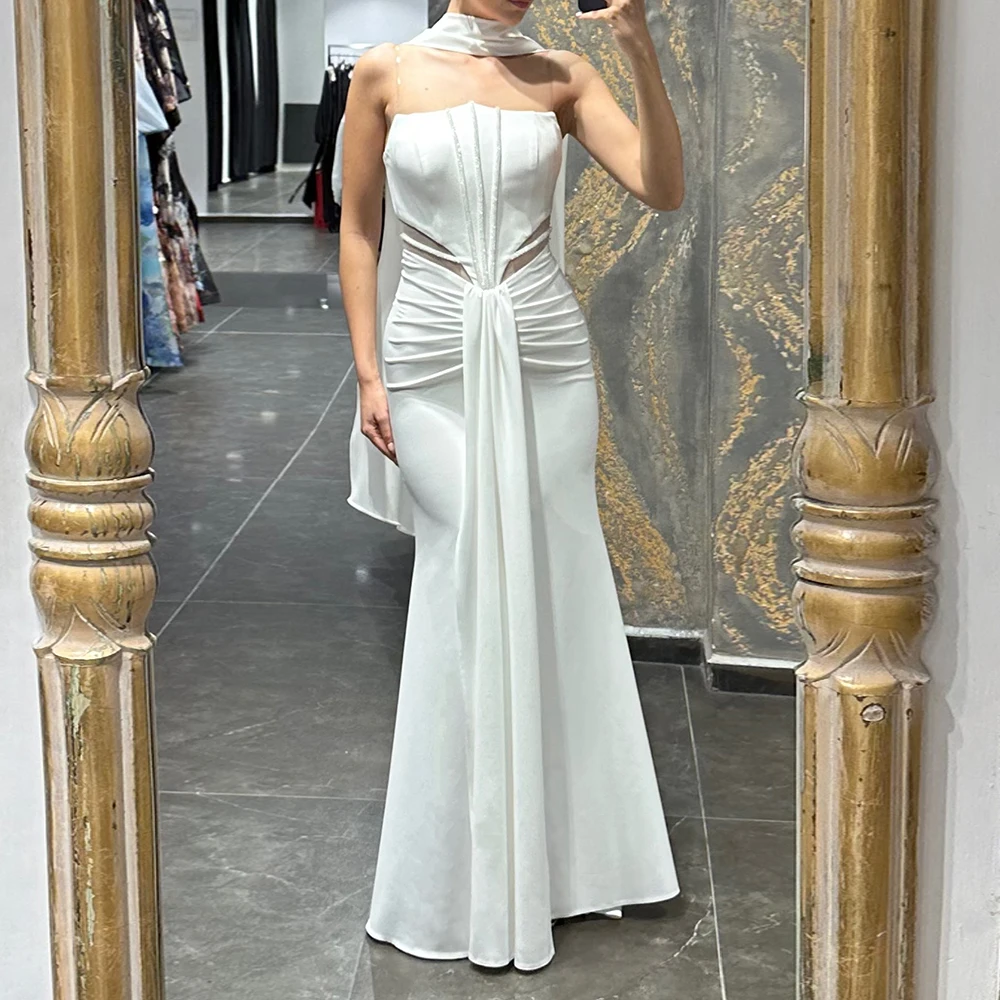 Вечерние платья русалки по индивидуальному заказу, длиной до пола, без бретелек, без рукавов, платье для выпускного вечера, модное простое вечернее платье с блестками и драпировкой