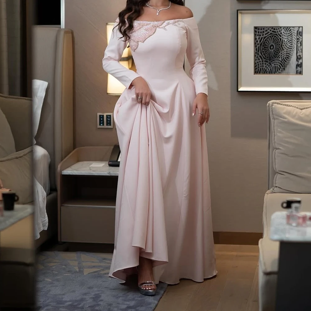 Вечерние платья трапециевидной формы по индивидуальному заказу, длиной до пола, с открытыми плечами и длинными рукавами, платье для выпускного вечера, модное простое драпированное вечернее платье с блестками