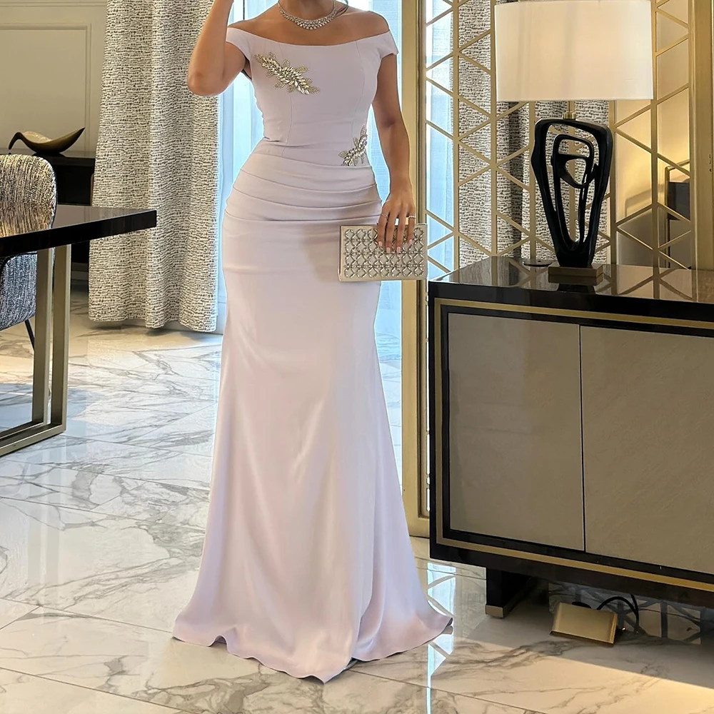 Вечерние платья трапециевидной формы по индивидуальному заказу, длиной до пола, с открытыми плечами, платье для выпускного вечера без рукавов, модное простое драпированное вечернее платье с кристаллами