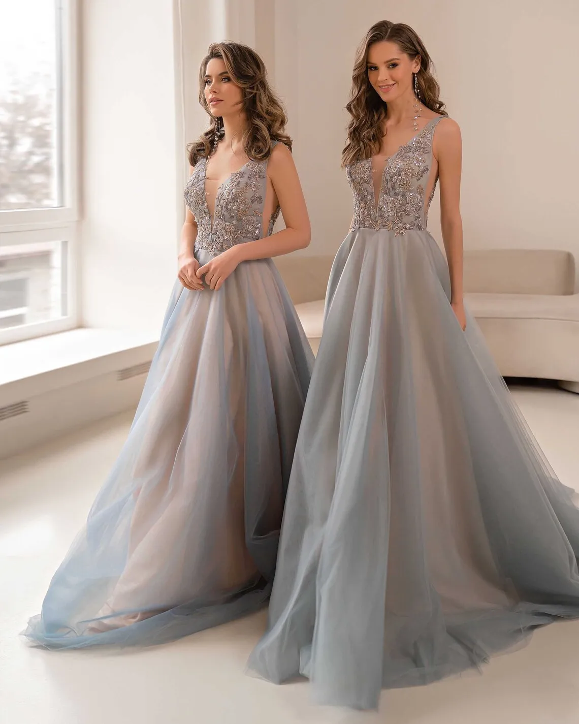 Вечерние платья цвета серо-шампанского, кружевное платье с аппликацией из бисера и V-образным вырезом без рукавов, длинное ТРАПЕЦИЕВИДНОЕ ПЛАТЬЕ ДЛЯ официальной вечеринки, выпускного вечера для особых случаев