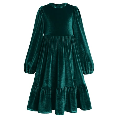 IDOPIP Toddler Baby Girls Velvet Dress Kids Princess Pageant Birthday Party Dresses Ruffle Long Sleeve Winter Fall Dress Vintage Formal Party Holiday Gown Clothes 7-8 Years Blackish Green