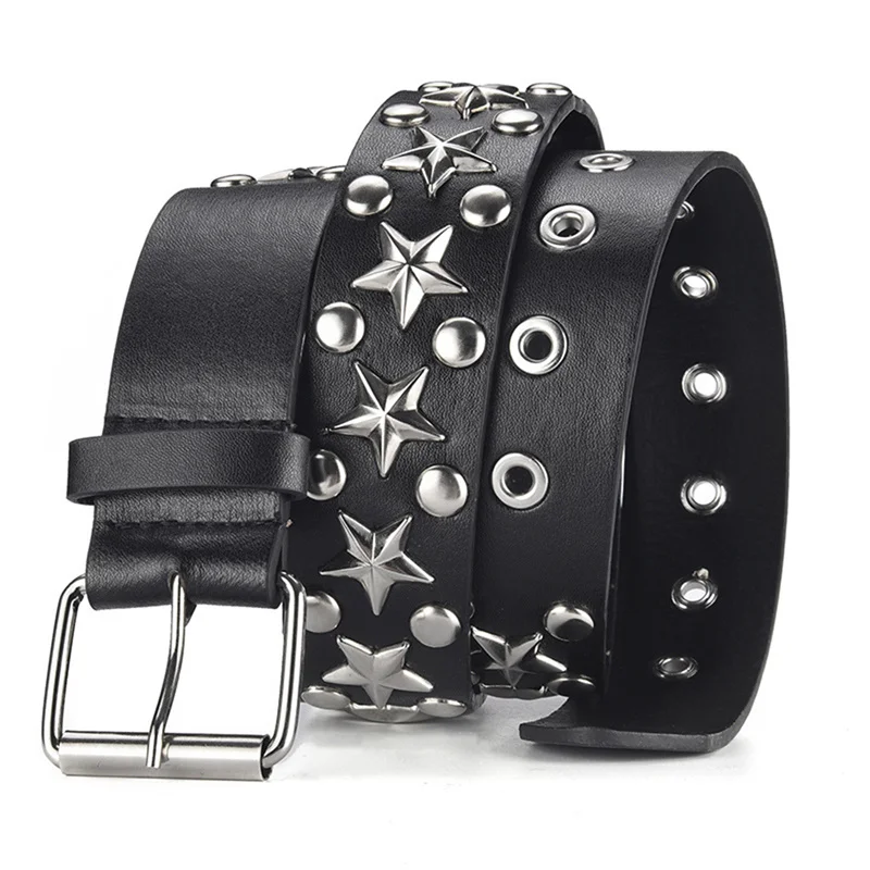 Новый ремень с заклепками в виде звезд и глаз в готическом стиле с двойной пряжкой Мужская/женская модная повседневная подставка для джинсо...