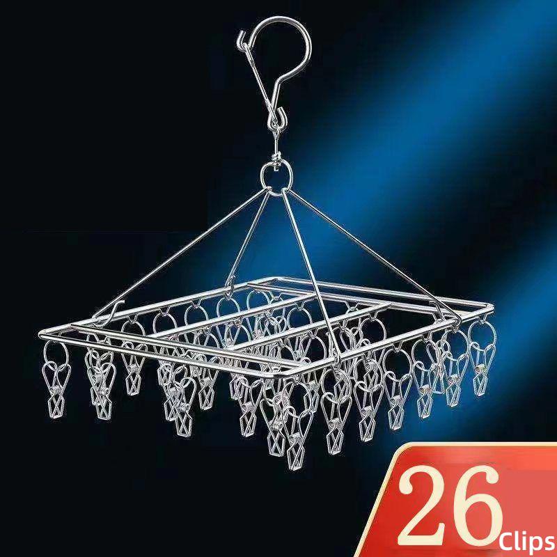 Вешалка для носков, вешалка для одежды из нержавеющей стали, многофункциональная вешалка для одежды, вешалка для нижнего белья, ветрозащитная спальня, вешалка для домашней одежды Rectangular 26clip putong