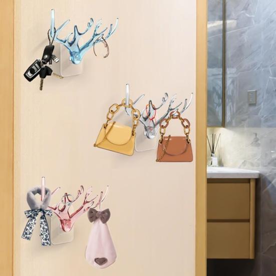 Вешалка для одежды настенная, простой пластиковый креативный держатель для ключей с рогами, крючок, бытовые принадлежности серый