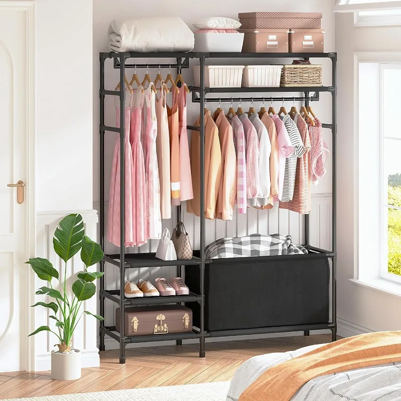 Вешалка для одежды с большой сумкой для хранения, вешалки для одежды для подвешивания одежды, отдельно стоящая вешалка для спальни, прихожей, Черная