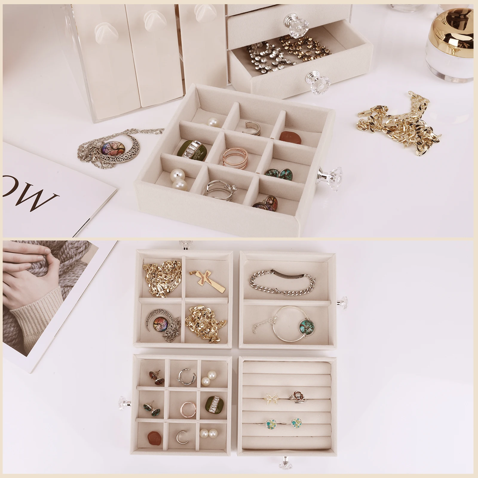 Вешалка для сережек, многофункциональная коробка для хранения сережек с 4-мя ящиками, органайзер для сережек, большая вместимость для туалетного столика в спальне